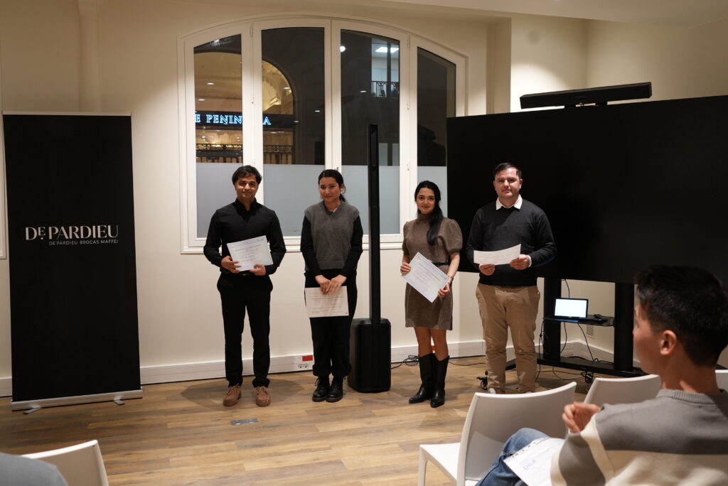 Une cérémonie remise de diplômes a été organisée le 12 février en collaboration avec le cabinet De Pardieu Brocas Maffei qui nous a ouvert ses portes pour l’occasion. Une centaine d’invités a pu assister aux retrouvailles entre élèves et professeurs. Voici les témoignages de Sama et Angela, lauréates du DELF B1 :